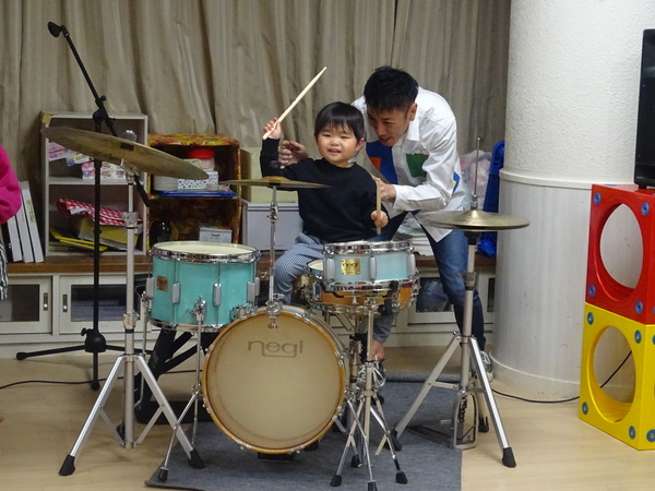 ドラムたたく体験したよ!どう?かっこいいでしょ!