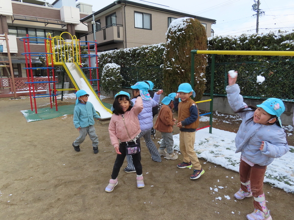 みんなで雪あそび楽しかったよ。雪合戦で盛り上がったよ!