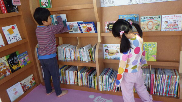 - 保育園にない絵本が沢山あったり、絵本の読み聞かせもしてもらったりして絵本がもっと好きになったよ!
