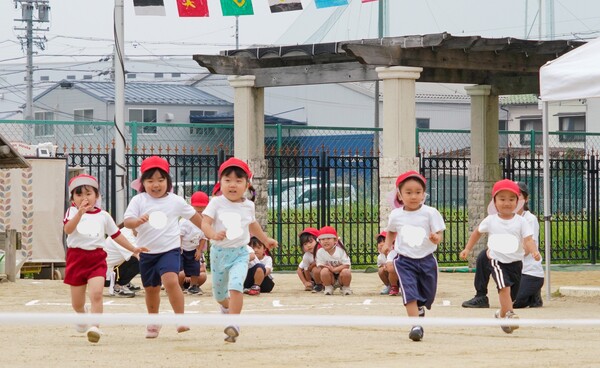 4歳児クラスかけっこ 一番取るぞ!と気合十分で走ります!
