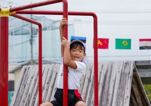 4歳児クラス、登り棒に登って宝物を探します