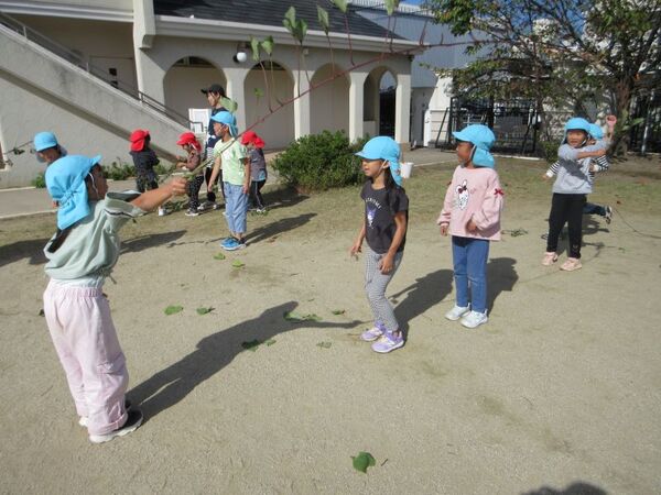 芋掘り後は、芋のつるでも遊びました!