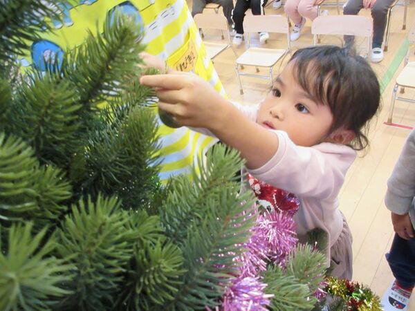 戸外に出る際、寒い日は上着を着用しています。あか組の子が困っていると、「出来る?」「やってあげるよ」と優しく手伝う姿がありました。また、クリスマスにサンタさんにもらったWammyというおもちゃで一緒に作品を作って楽しんでいます。 |